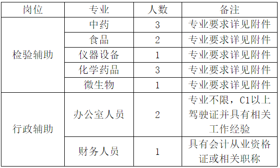 根據(jù)工作需要,大同市食品藥品檢驗(yàn)檢測中心委托大同市勵瑞勞務(wù)派遣有限公司招聘檢驗(yàn)輔助人員10名,行政輔助人員3名,用工形式為勞務(wù)派遣,現(xiàn)將有關(guān)事項公告如下: